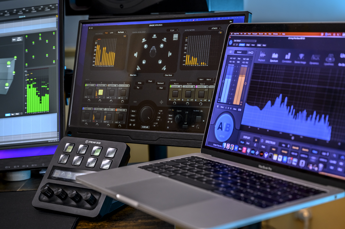 Monitors: Adam Audio A7V (x3)+ Adam Audio T10S sub woofer + iLoud Micro Monitor Pro (x8) in a 7.1.4 configuration